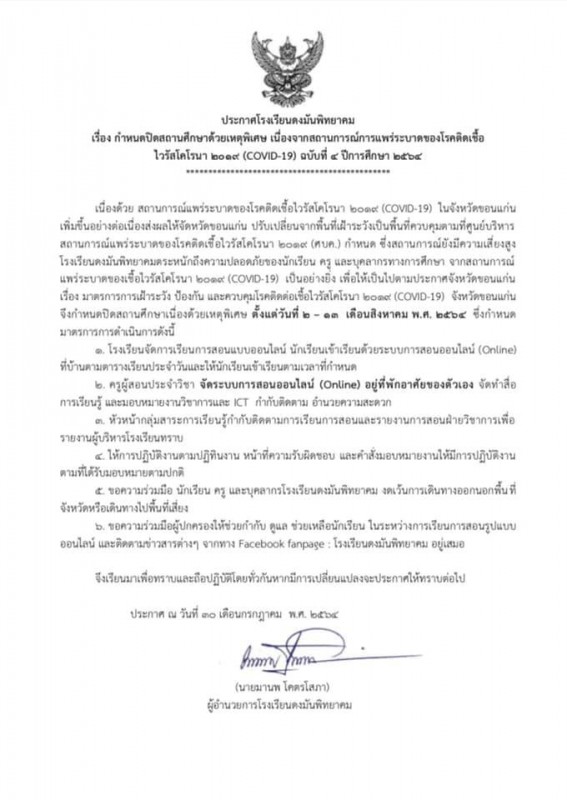 แจ้งประกาศ โรงเรียนดงมันพิทยาคม